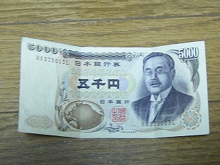 まさかの大発見、臨時収入でもあるこの5000円札、さぁどうしようか・・・。