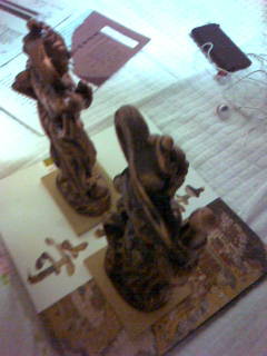 渋いといわれた仁王像にらきすたハルヒのフィギュアを挟んだシュールな図。