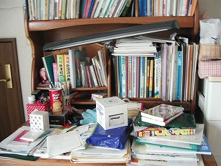 今、床に置いてあるものの3分の2くらいをとりあえず机の上にどけました・・・。
